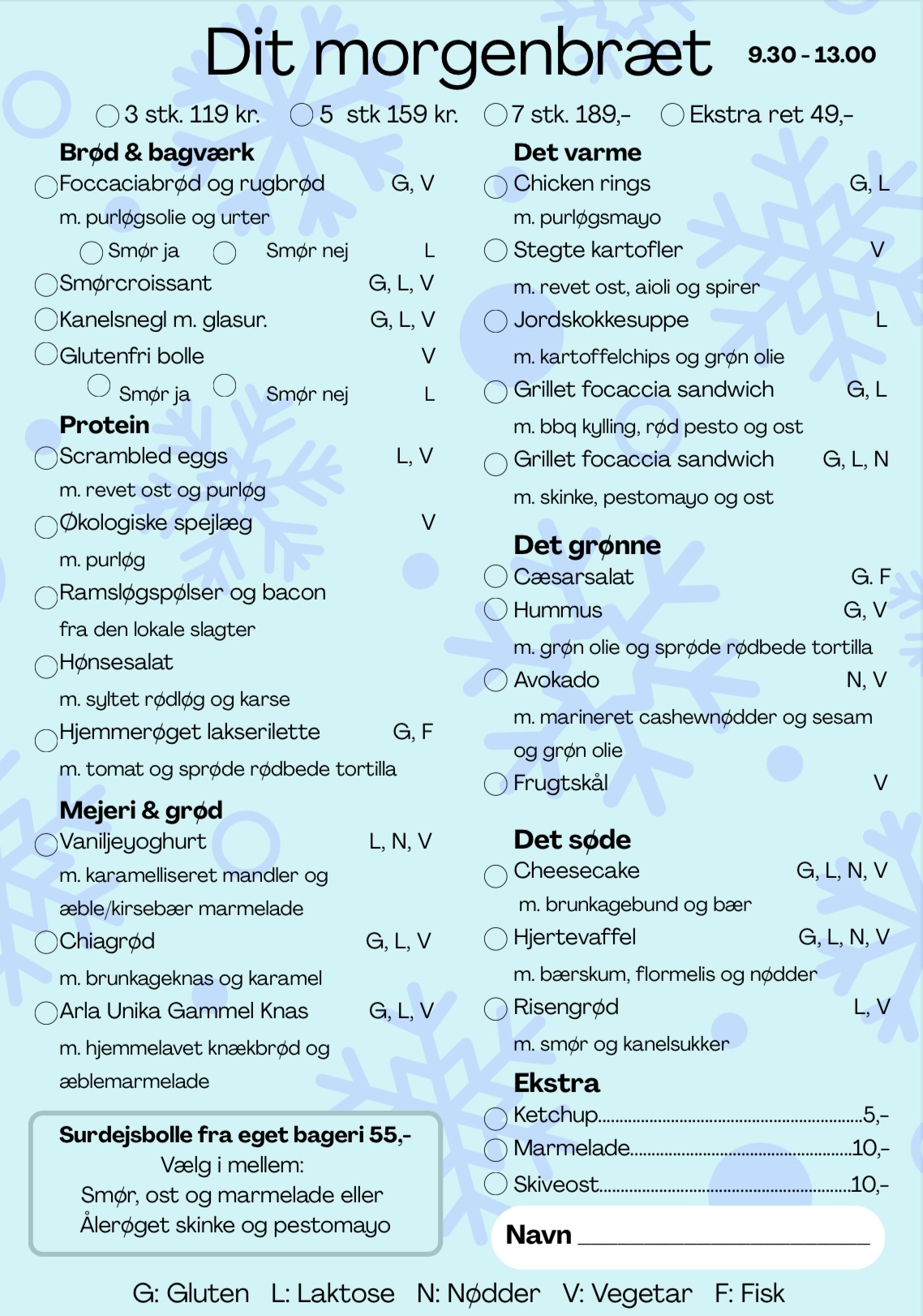 Morgenbrættet serveres mandag til lørdag fra kl. 9.30 - 13.00.
